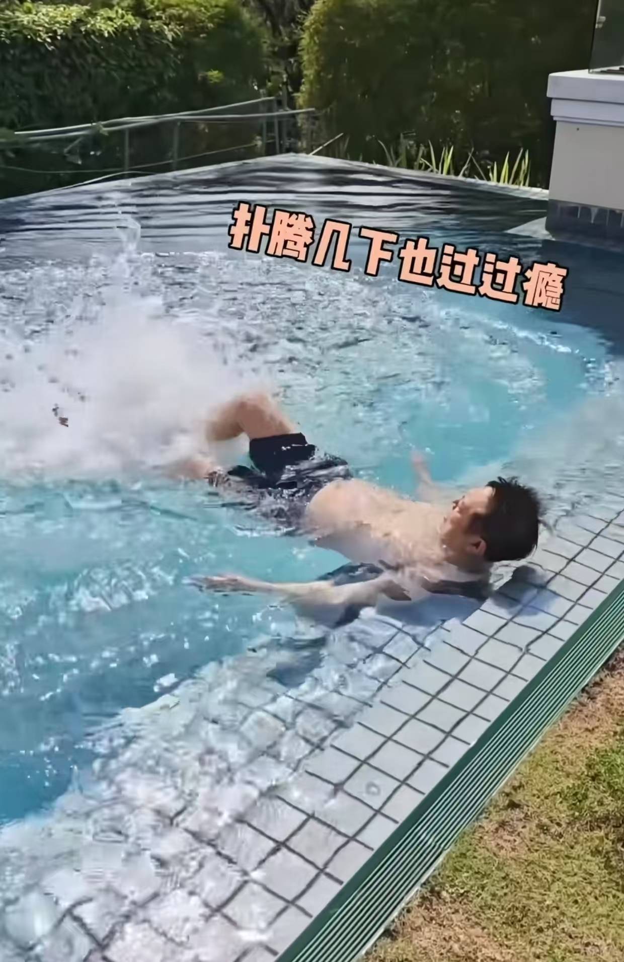 到此,他才跑到泳池里象征性的扑腾了几下。